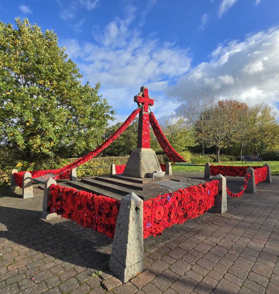 A BOROUGH village war memorial has been garlanded with more than 6,000 poppies.