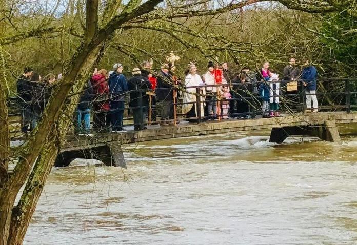 Worshippers from the Prophet Elias Greek Orthodox Church in Reading gathered at the footbridge over the river in Sonning for a ritual on Saturday to celebrate the feast of the Epiphany.