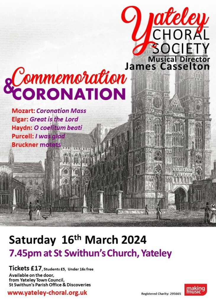 YATELEY Choral Society’s spring concert has the theme of Commemoration and Coronation.