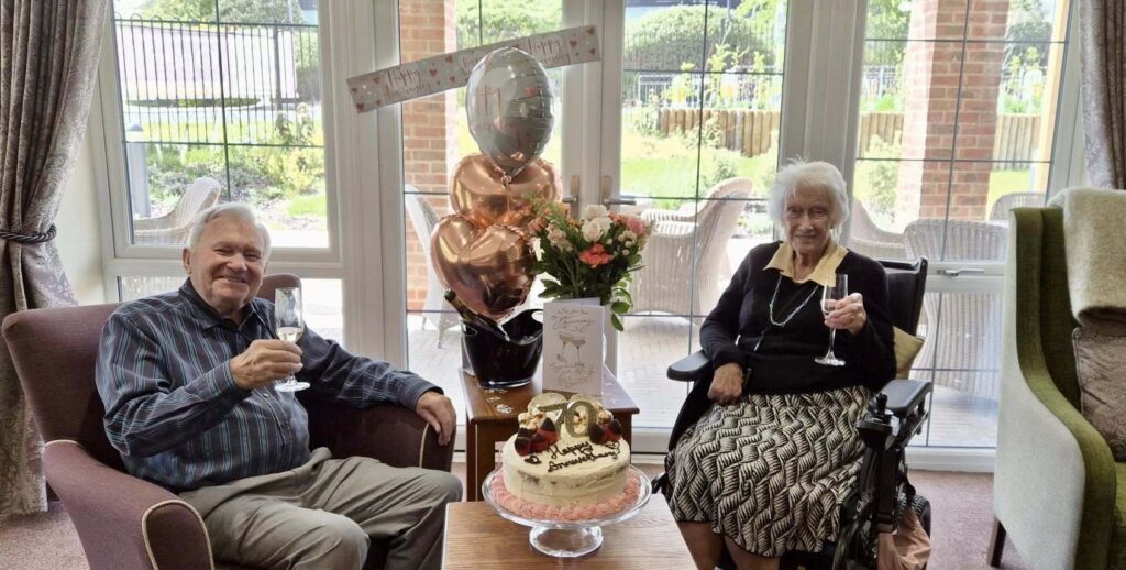 RESIDENTS and team members at a Binfield care home celebrated a special milestone in the lives of Barbara and Graham.