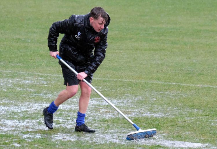 Wokingham Town’s match at Wembley was abandoned at half time after a downpour of biblical proportions left standing water on the pitch.
