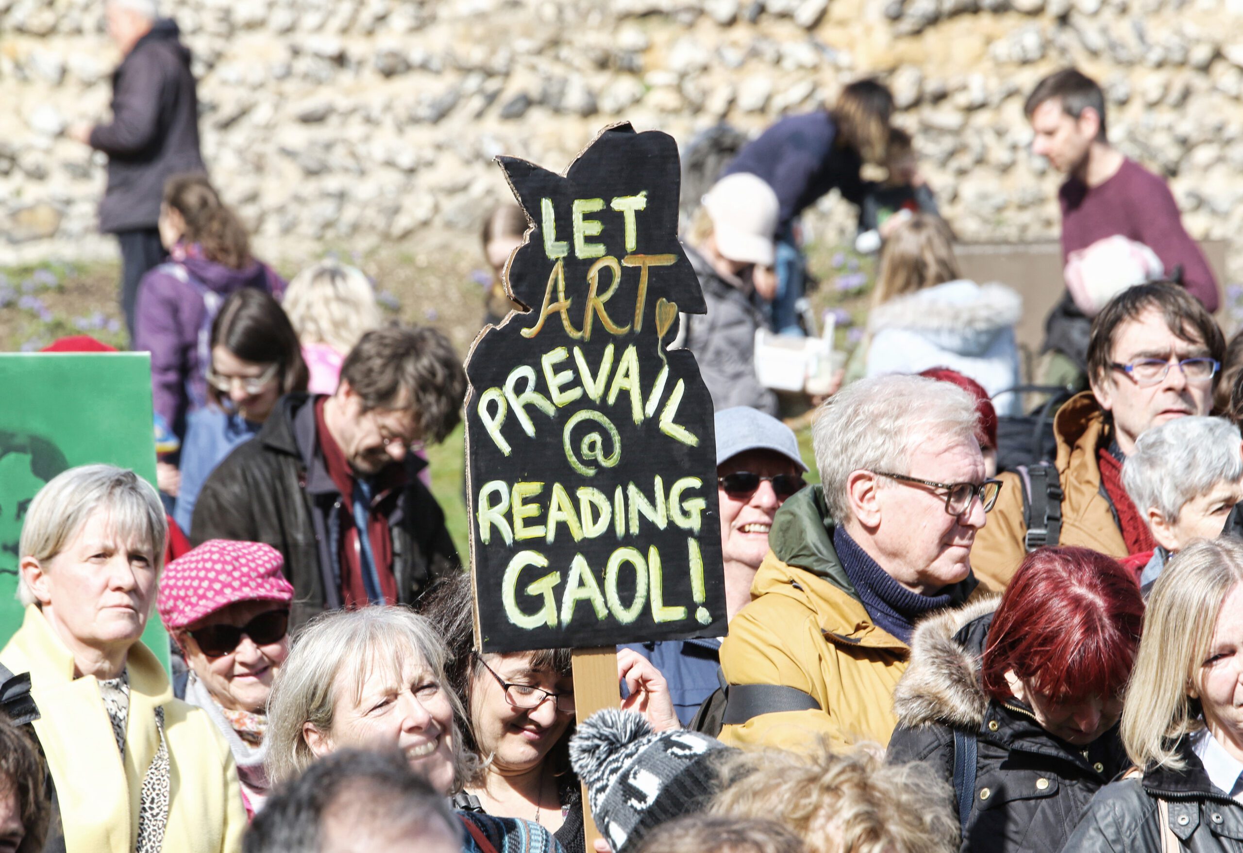 People supported the marchers along the route and in the Abbey Ruins the speeches were all about wanting the site to be an investment in the arts, culture and tourism for Reading and the surrounding area – crying loudly to the Ministry of Justice to consider the gaol’s potential for real value not just the money. Who cares? We care.