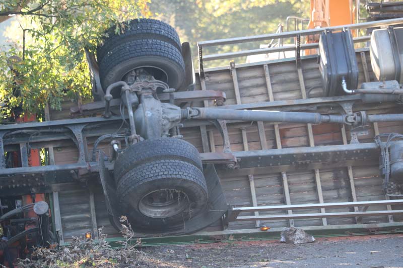 Encountering a dip then a hump, the HGV was rolled onto its side and came to a stop some 50 yards further on. The second oncoming driver managed to avoid a collision by taking action that put their vehicle off the road and on its side.