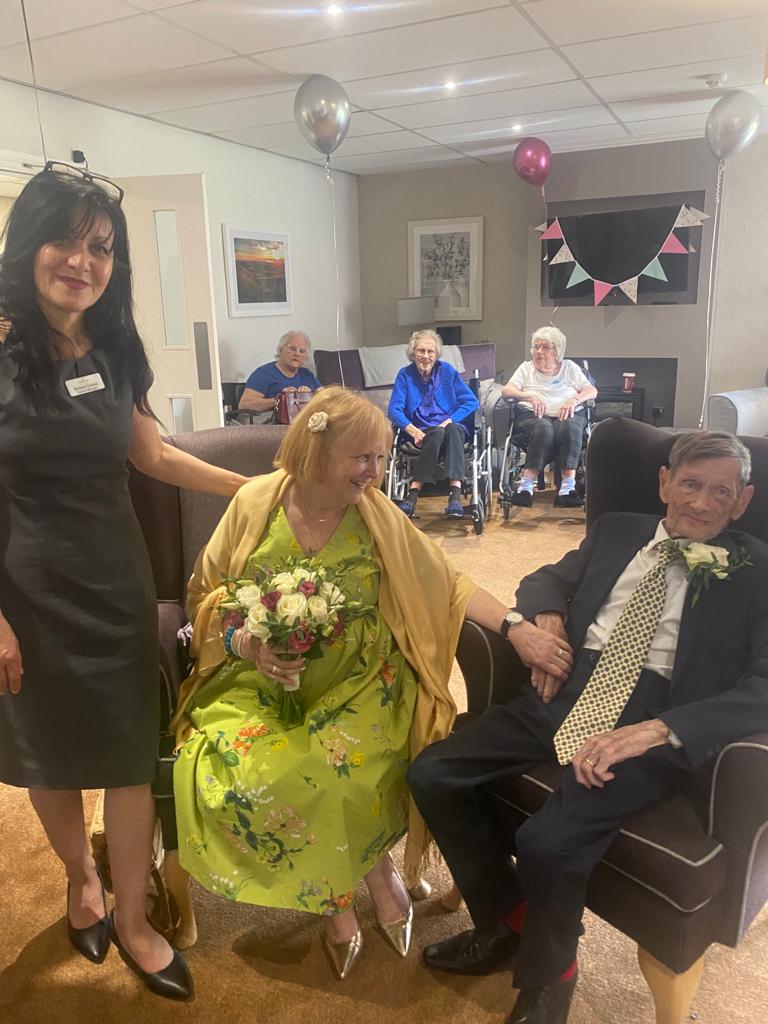 Family and friends gathered in the West Oak Care Home to celebrate the couple’s special day along with residents and staff who decorated one of its lounges with flowers and balloons.