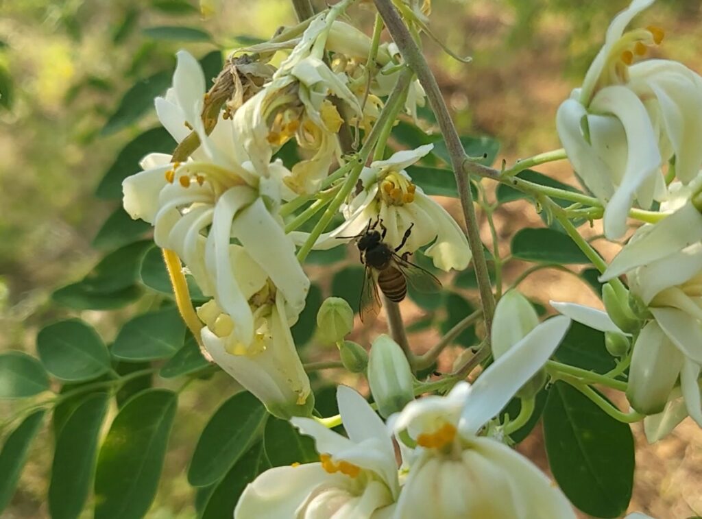 “We worked with farmers in South India to design the best co-flowering crops and boost the numbers of native bees and other insect pollinators visiting the moringa orchards.