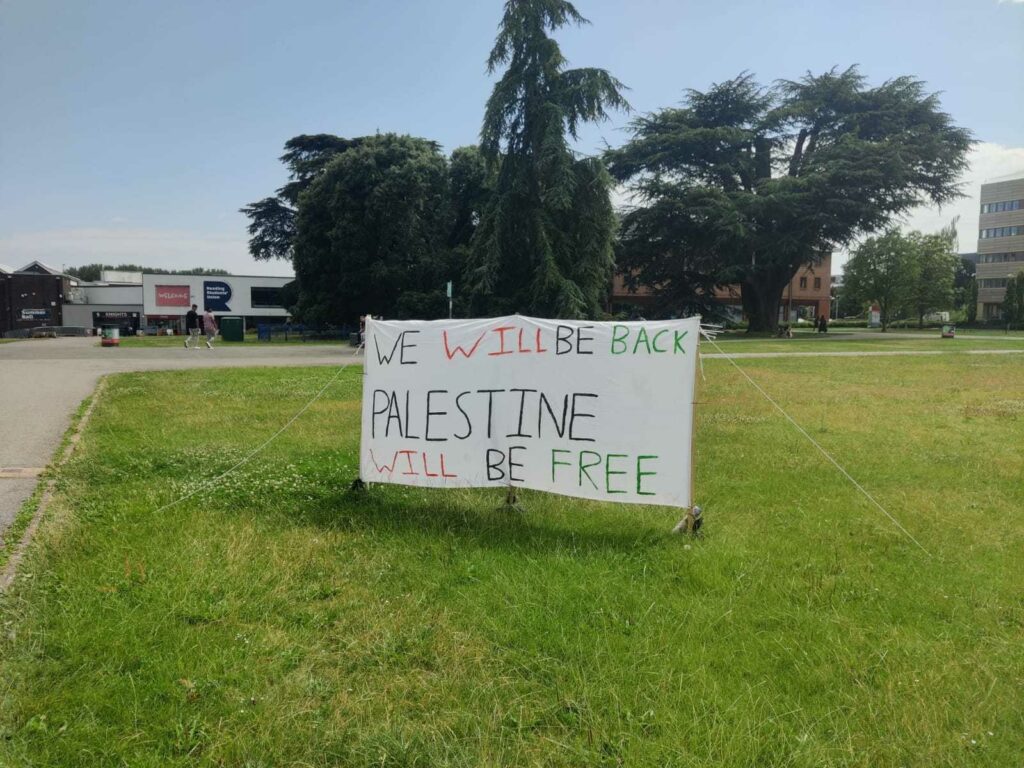 Protestors set up camp in Whiteknights Campus amid protests sparked across the world in solidarity with the people of Palestine, opposing Israeli offences which have been described as a genocide of innocent Palestinians.