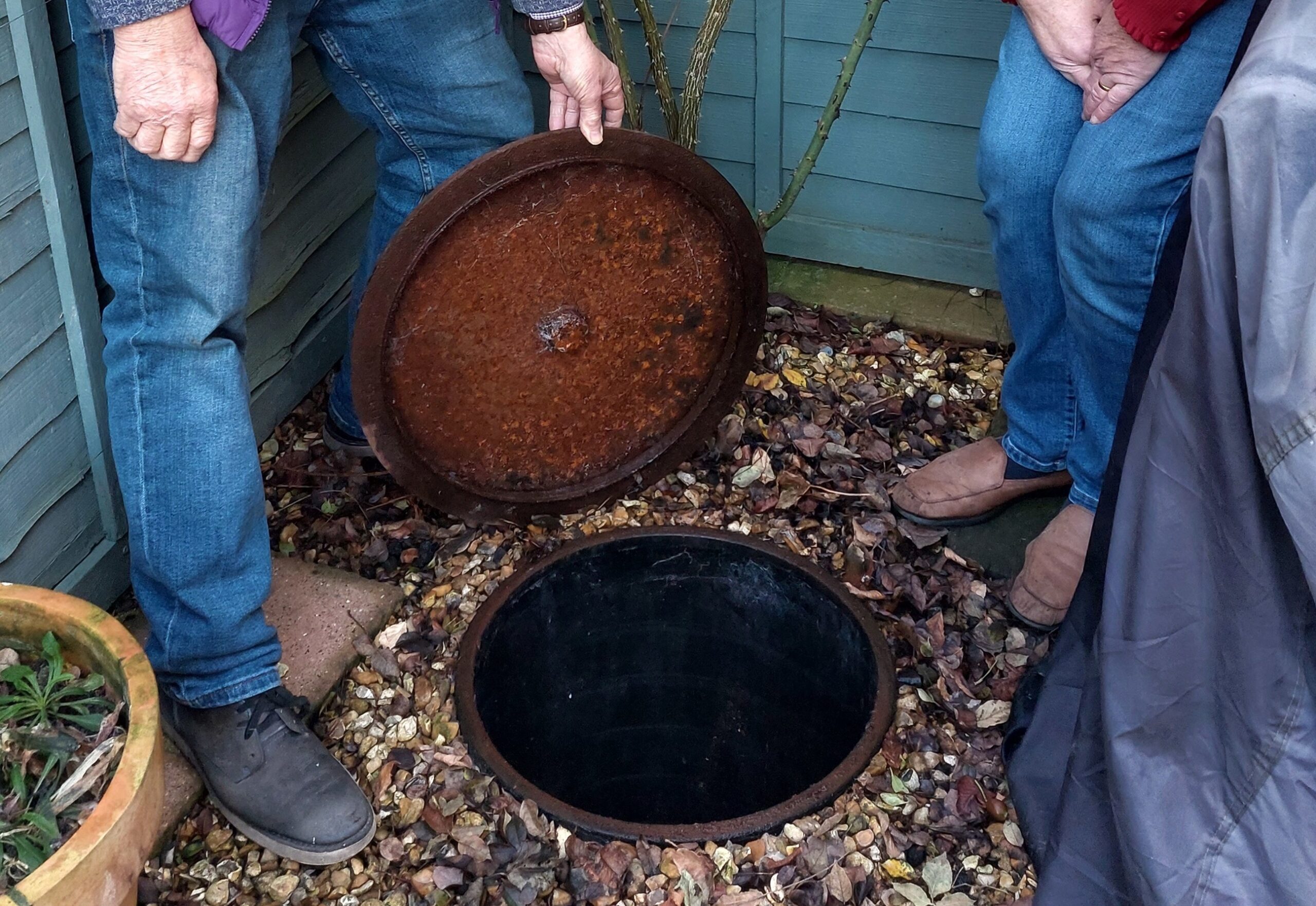 The couple fear that their 6ft deep manhole, which should be empty, may fill to the top one day, spilling over into their garden. They also worry their toilet may spill over into their house.