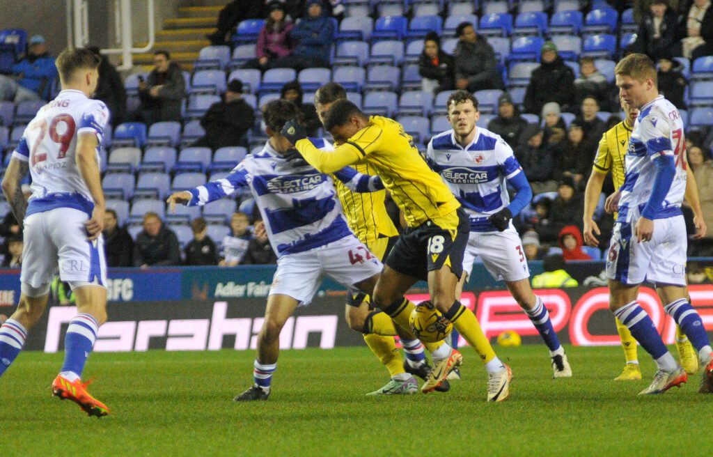 The Yellows nearly got into Reading’s box again but were thwarted by a mistimed tackle from Holmes who swiped at the ball but instead brought down an Oxford player which led to him being booked.