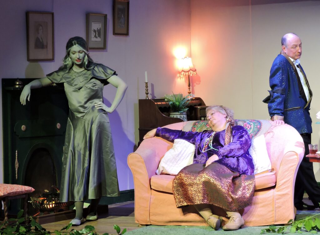 Not surprisingly, Madame Arcati played by Sandra Miall stole the show. She was clearly enjoying every moment of it. Interestingly, her daughter Kirsty Miall played the part of Ruth, and with great confidence. Her grandma had also taken this part back in 1977, which made it a real family affair.