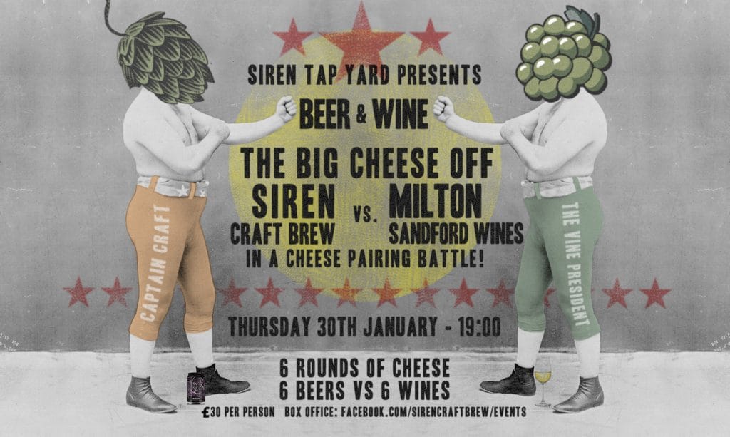 2020 will also see a host of exciting new Tap Yard events. The first of which is lined up for Thursday 30th January and is the ultimate triple threat battle royale – Beer vs Wine vs Cheese. We’ve teamed up with Millton Sandford Wines to pair 6 incredible cheese with 6 Siren beers and 6 wines. Tickets are £30 per person and can be booked at http://sirencraftbrew.com/bigcheese