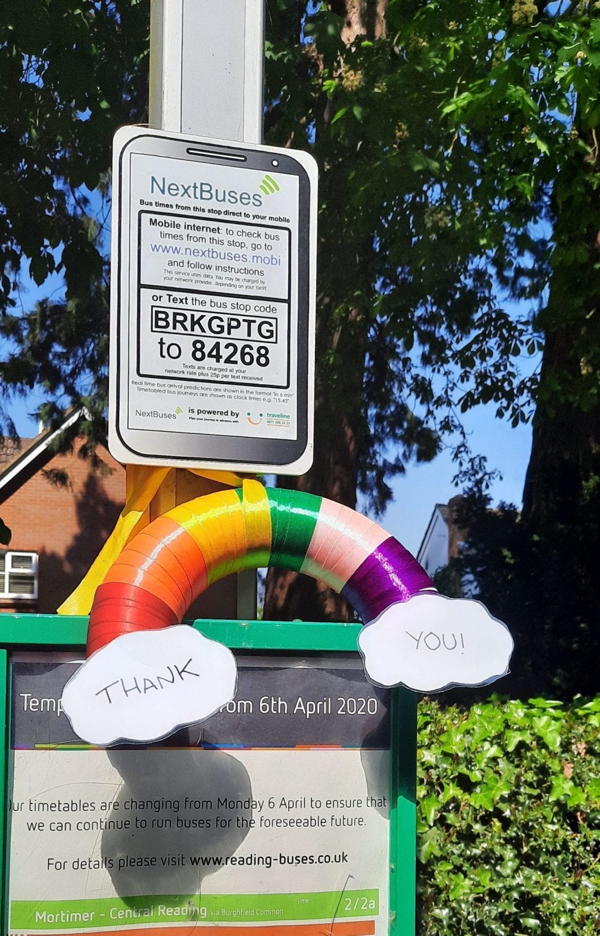 Graham found the colourful thank you note at a bus stop in Mortimer, and he was so bowled over by the rainbow that it’s been taken to the Great Knollys Street depot so others can enjoy it.