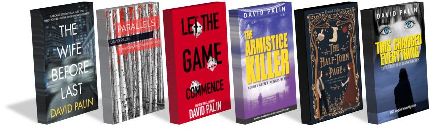 David’s published novels, The Wife Before Last, Let The Game Commence, The Armistice Killer, This Changed Everything, The Half-Torn Page, and Parallels, can be found online and in major book stores.