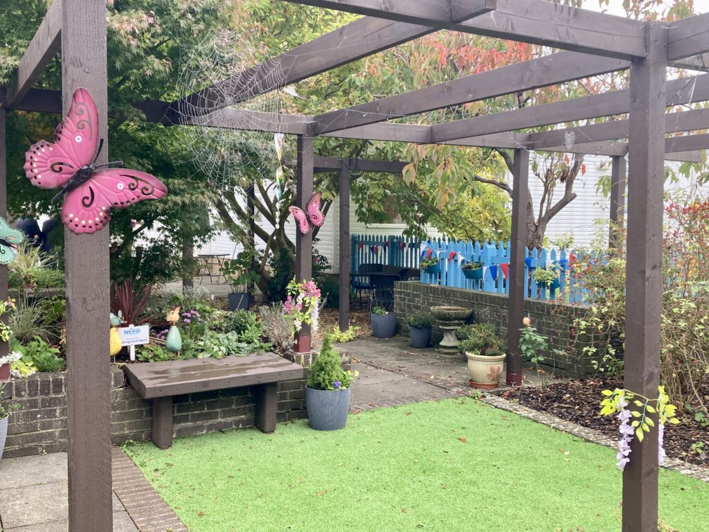 Tucked inside the centre of Wokingham Hospital, a sensory garden with shrubs, small trees, pergolas and benches has been created by volunteers, to benefit staff, long term patients, and their visitors.
