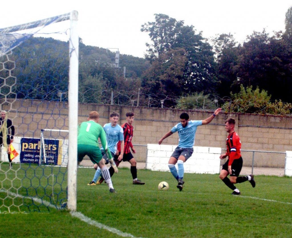 A goal eventually came in the 39th minute when Whitters’ long range shot rebounded off the home crossbar with Jude Steinborn-Busse reacting quickest to steer the loose ball into the Woodley goal.
